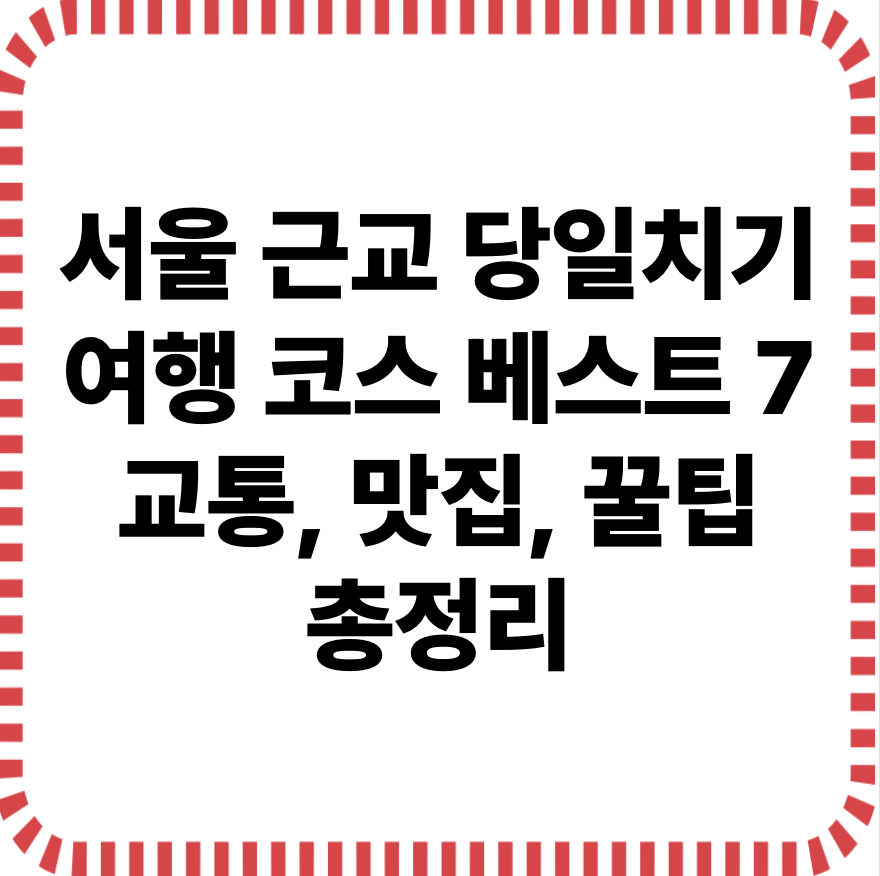 서울 근교 당일치기 여행 코스 베스트 7 – 교통, 맛집, 꿀팁 총정리