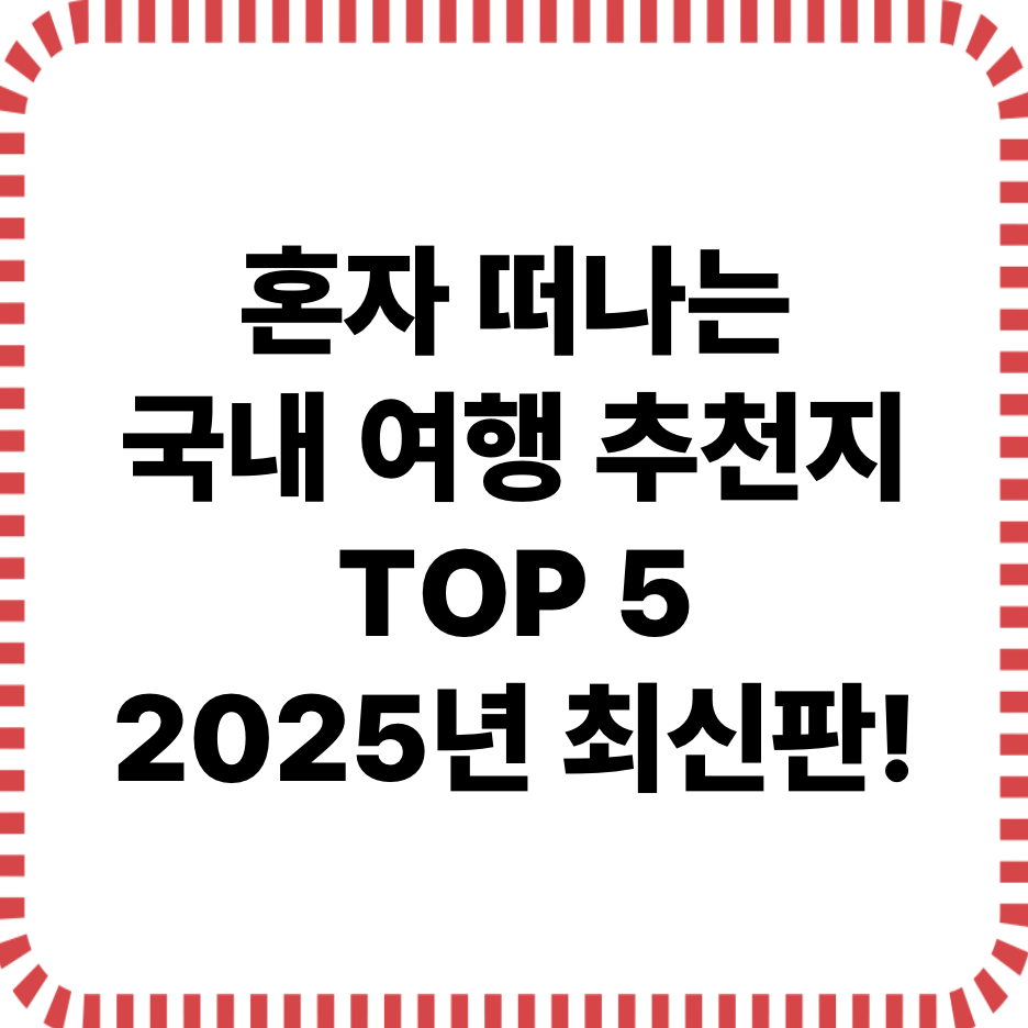 혼자 떠나는 국내 여행 추천지 TOP 5 – 2025년 최신 업데이트
